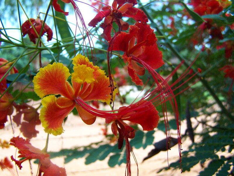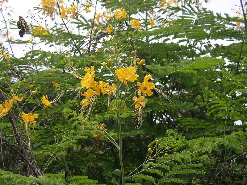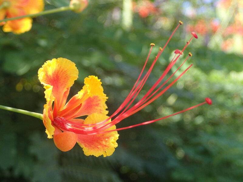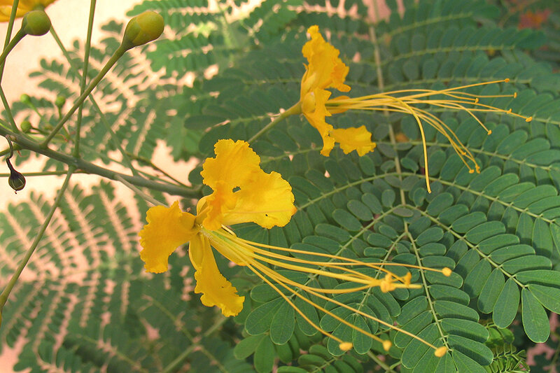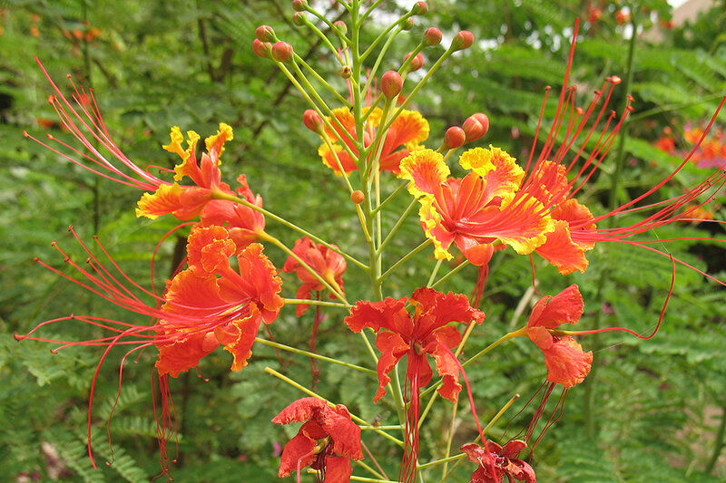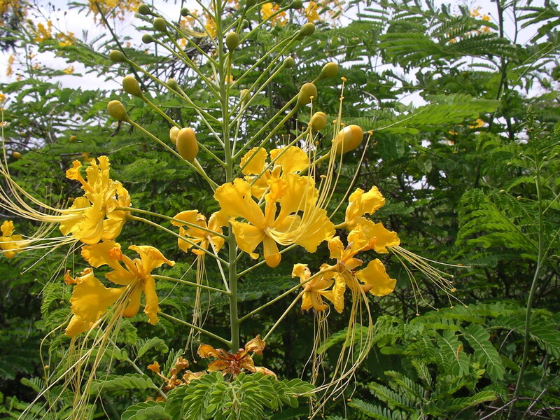 de: Pfauenstrauch; en: peacock tree, Pride of Barbados; fr: fleur de paon, petit flamboyant