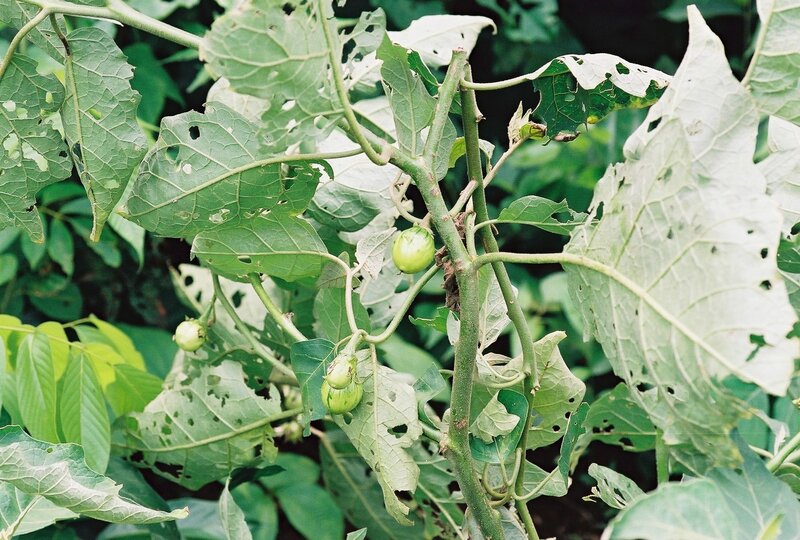 de: äthiopische Eierfrucht, afrikanische Aubergine; en: ethiopian eggplant; fr: aubergine africaine, gilo