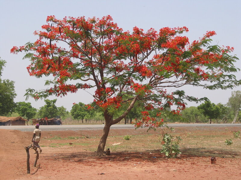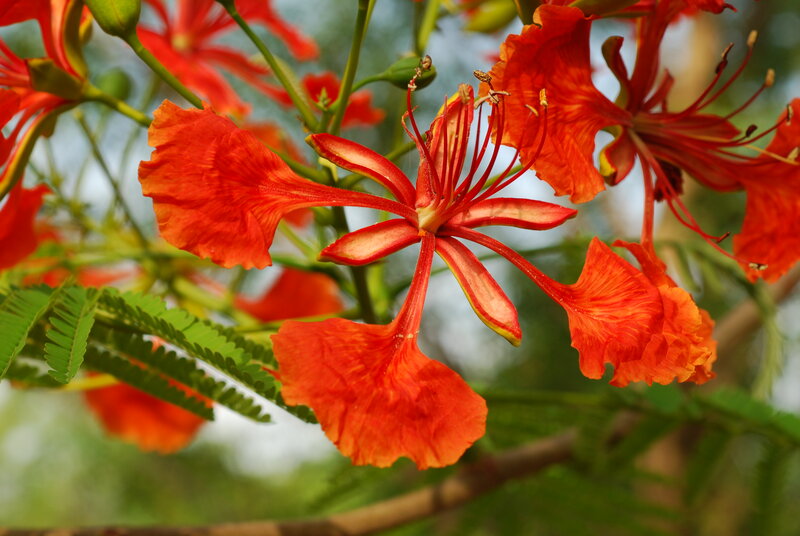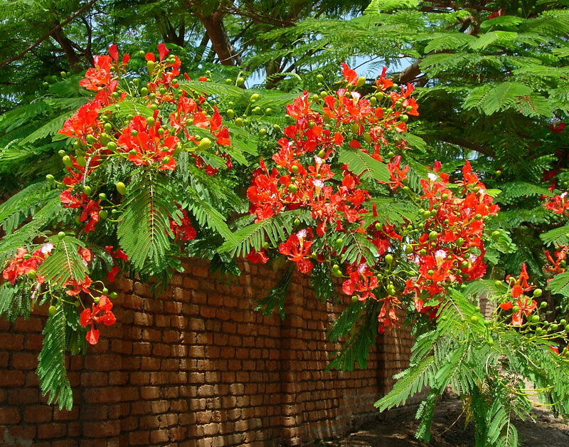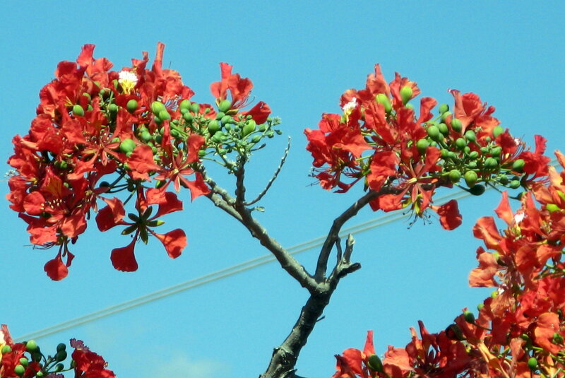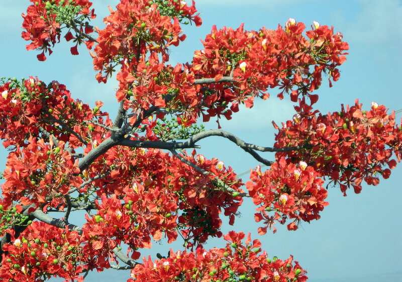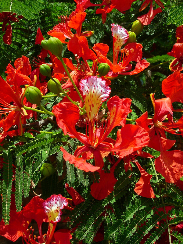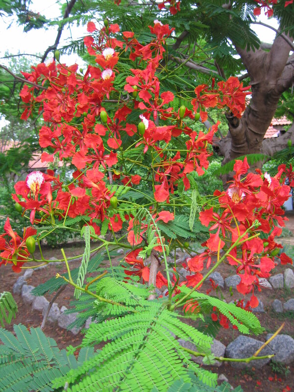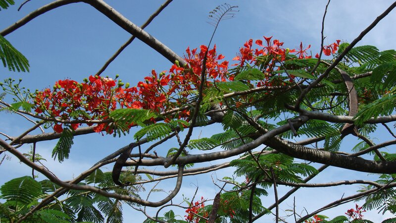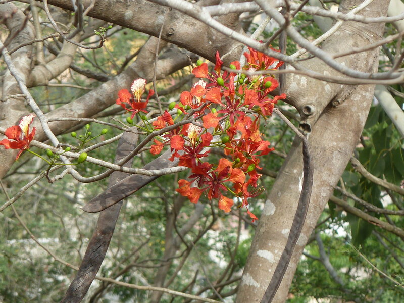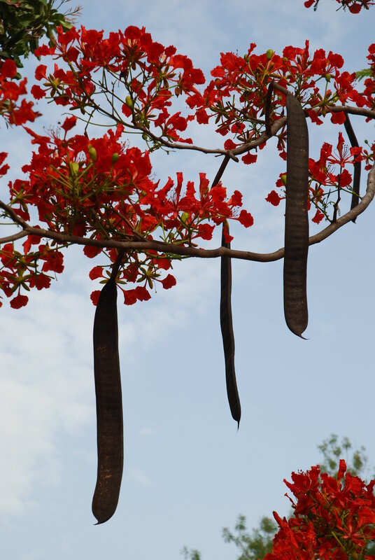 af: Flambojant; de: Flammenbaum, en: royal poinciana, flamboyant, flame tree, peacock-flower; es: framboyán, arbol de fuego; fr: Flamboyant