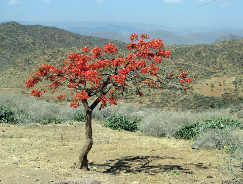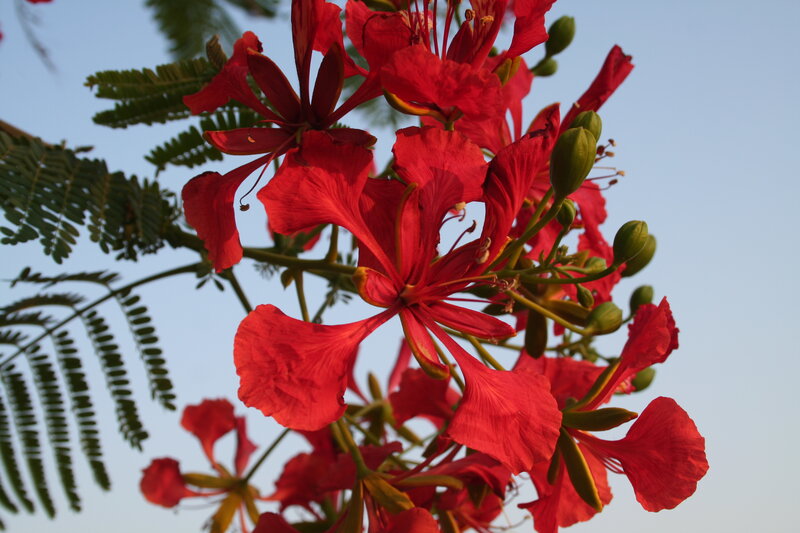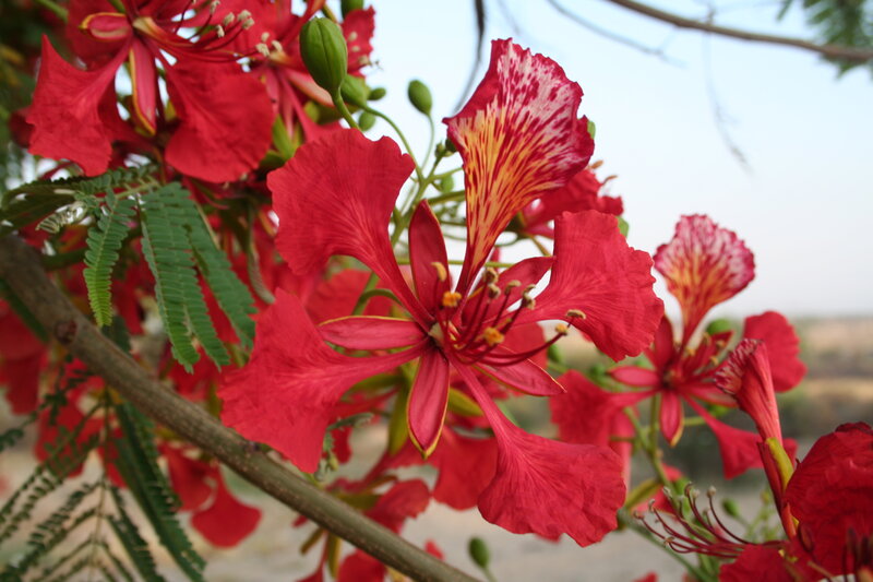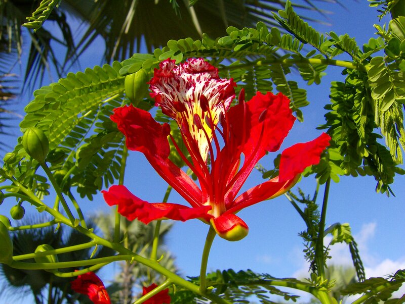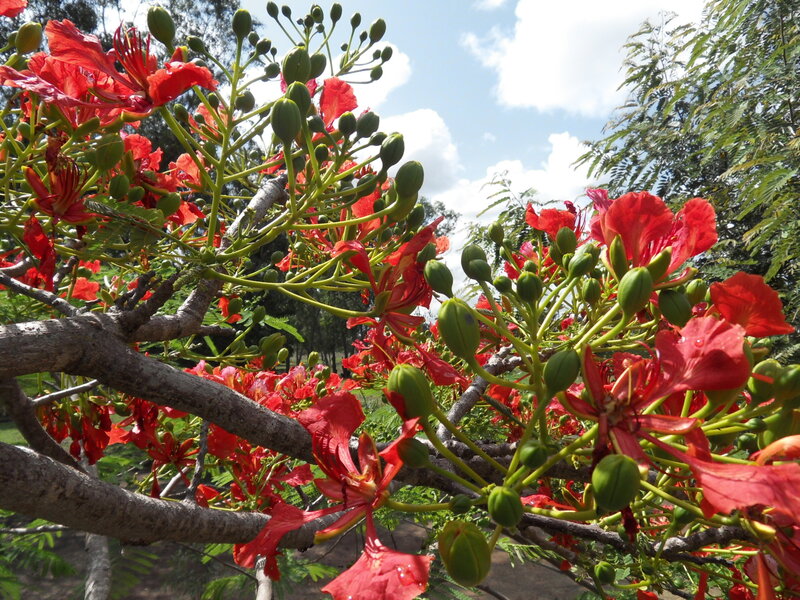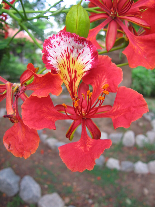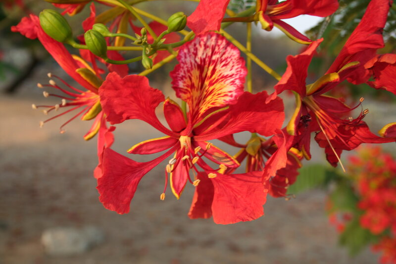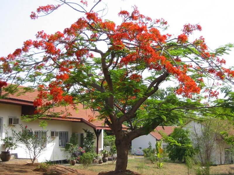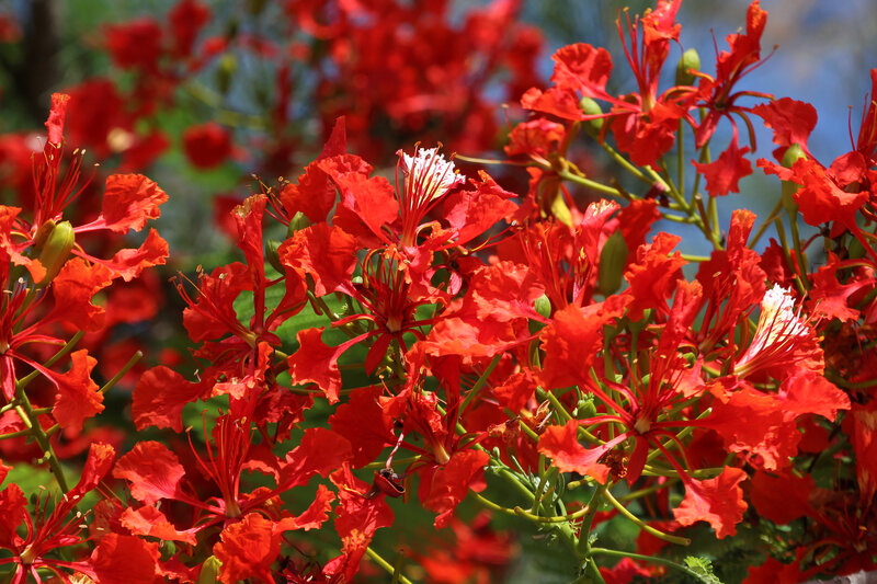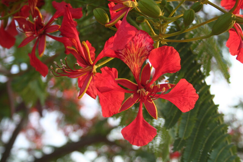af: Flambojant; de: Flammenbaum, en: royal poinciana, flamboyant, flame tree, peacock-flower; es: framboyán, arbol de fuego; fr: Flamboyant