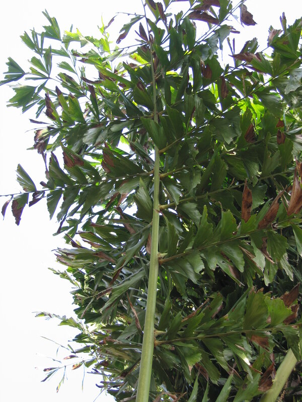 de: Brennpalme, Fischschwanzpalme; en: jaggery palm, solitary fishtail palm