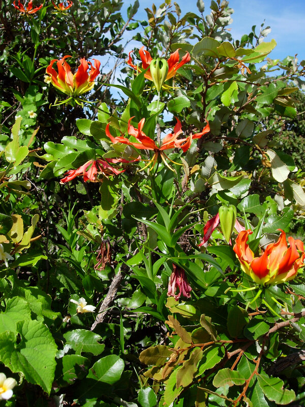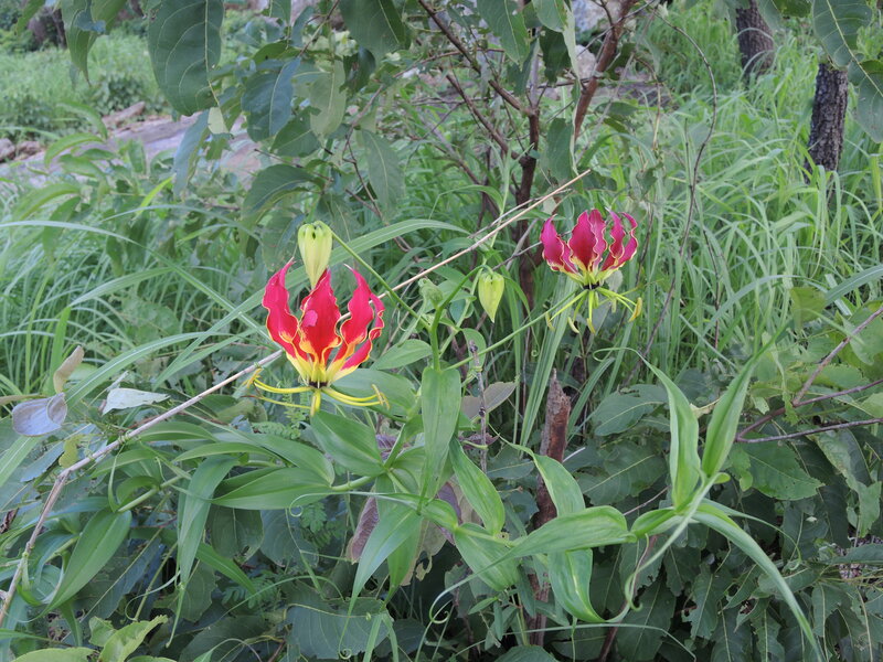 de: Ruhmeskrone; en: african honeysuckle, climbing lily, flame lily, fire lily; es: glorioso lirio; lirio escalante; fr: lis grimpant, lis de Pobèguin; mas: Molok, Molong; nl: klimlelie; pt: raiz-de-empose; sv: klänglilja; swa: Mwana funzi